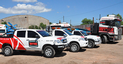 Para hacer frente a la atención de las prestaciones contamos con motrices de mediano y gran porte tipo 6x2 (Balancines de eje neumático) marca Ford, Scania, Volvo e Iveco.